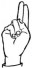 На ћирилици написано ИРИНА КРСМАНИЋ састоји се из 13 слова [?]. Исписано ћириличном једноручном азбуком за глувонеме:
